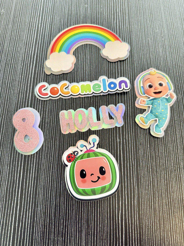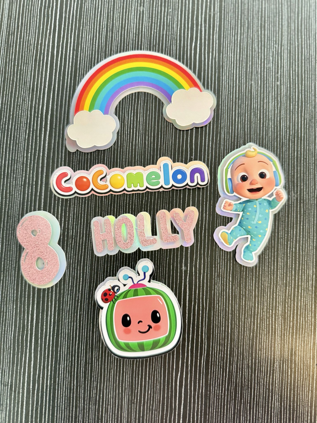 Personalised COCO MELON Birthday, Age, Name Glitter Cupcake Toppers various colours