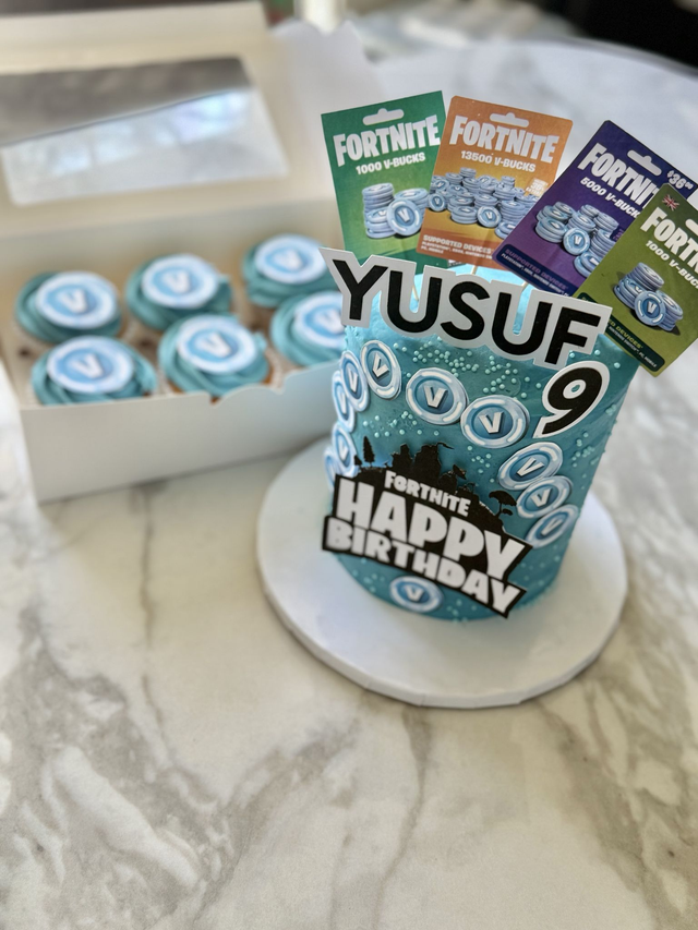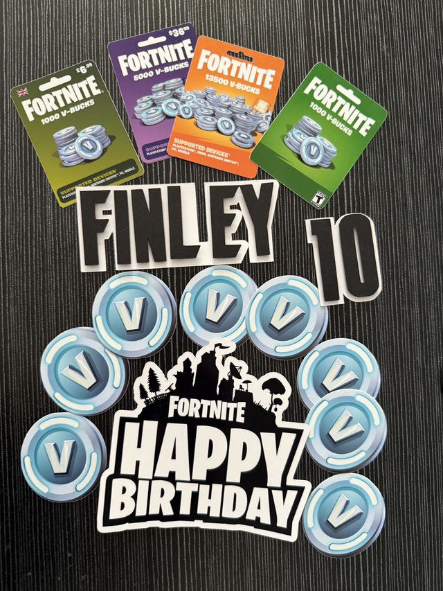 Personalised FORTNITE V BUCKS Birthday, Age, Name Glitter Cupcake Toppers various colours