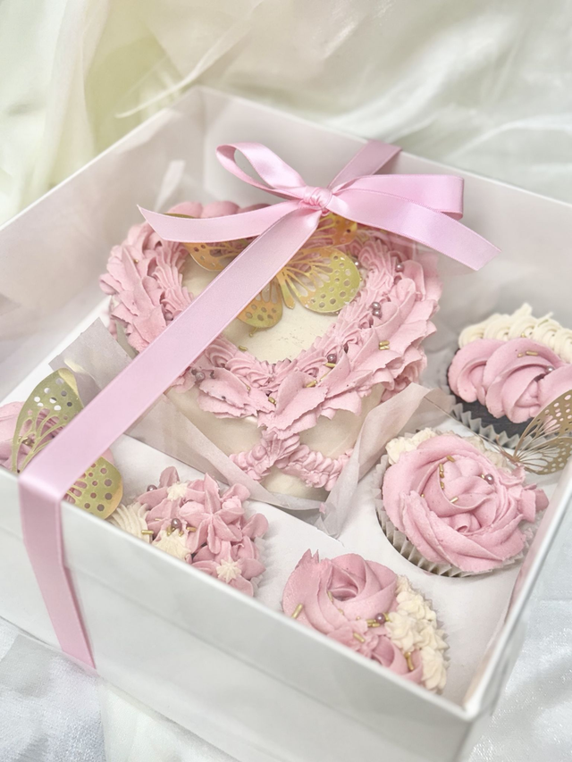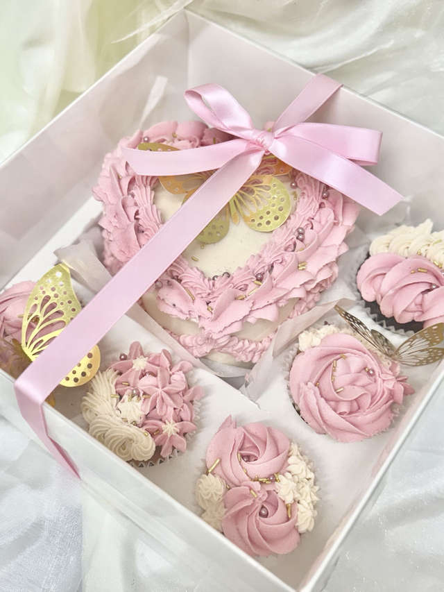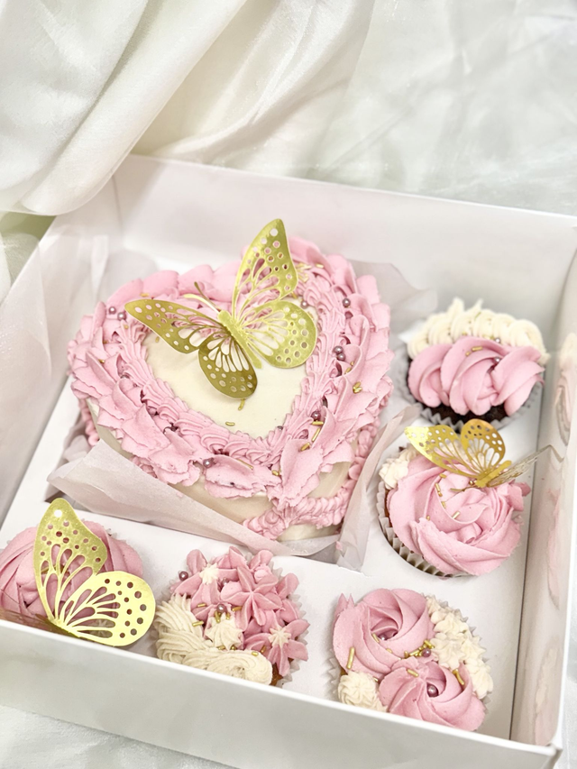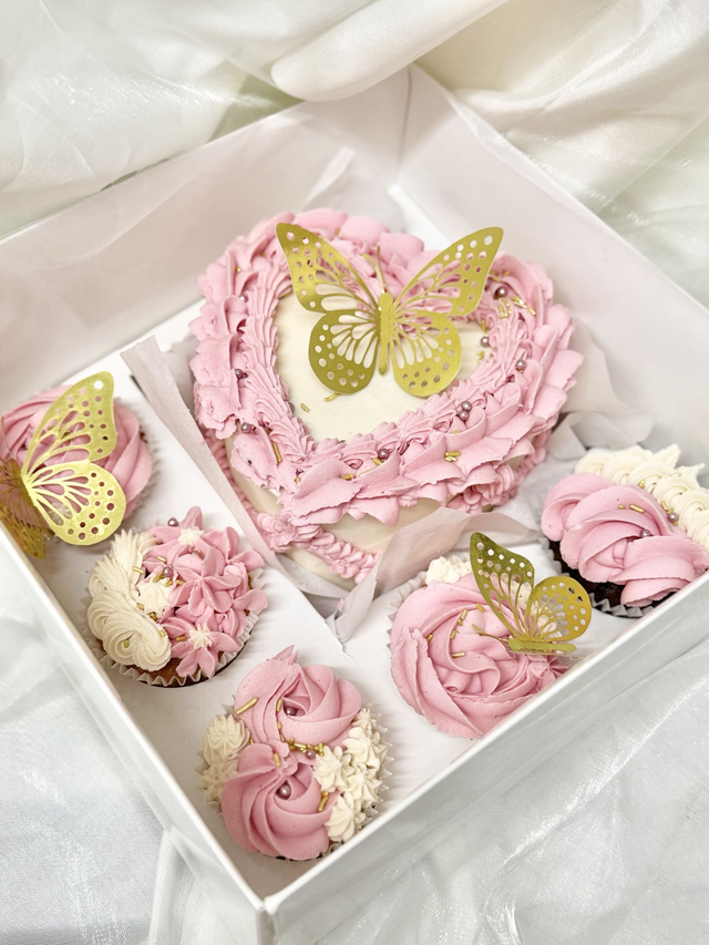 Pink Butterfly Bento Heart Cake & Cupcakes