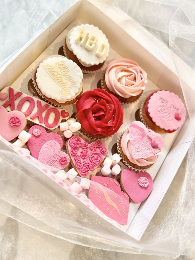 Celebrate Valentine’s / Galentine’s Day with our striking cupcakes & cookies – perfect for gifting and sharing with family & friends! Freshly baked and sure to impress, this Bento cake & cupcakes box offers a delightful taste experience. Make this joyous occasion extra special with a personalised touch – add a custom message! Available in a variety of flavours.