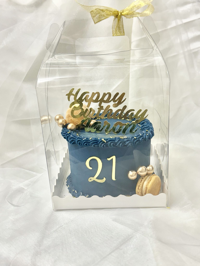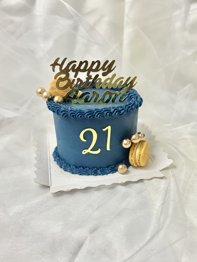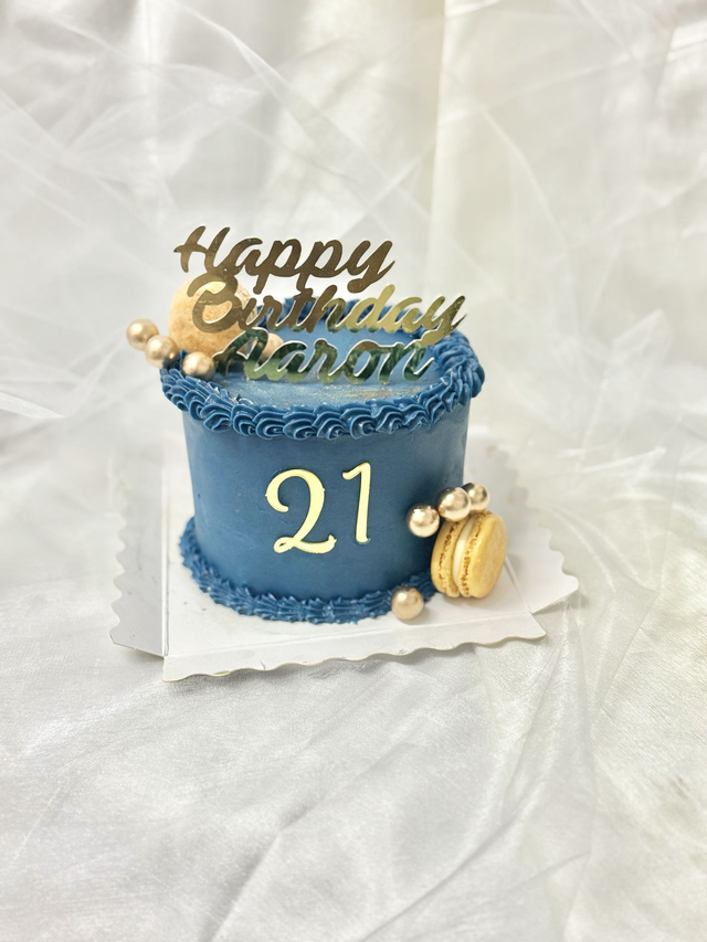 Celebrate with our striking 21st birthday cake in blue & gold! Freshly baked and sure to impress, this cake offers a delightful taste experience. Make their day extra special with a personalised touch – add a custom message! Available in a variety of flavours.