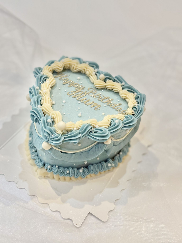 Baby Blue Vintage Heart Birthday Cake