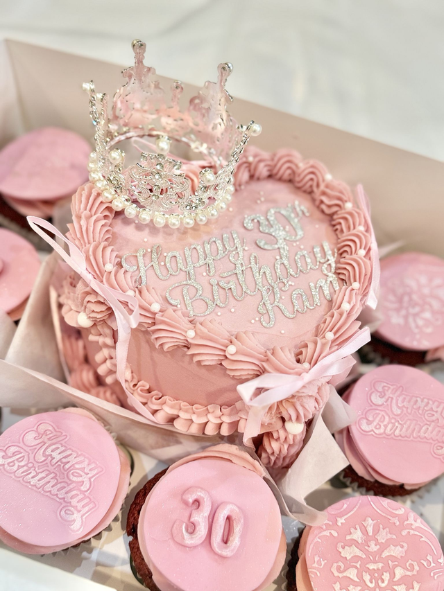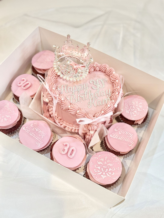 Heart & Crown Bento Birthday Cake & Cupcakes