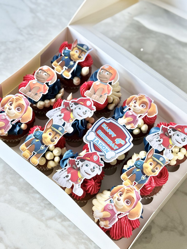 Celebrate with our striking Paw Patrol birthday cake decorated with your favourite paw patrol characters! Freshly baked and sure to impress, this cake offers a delightful taste experience. You complete your party with matching Paw Patrol cupcakes. Make their day extra special with a personalised touch – add a custom message! Available in a variety of flavours.