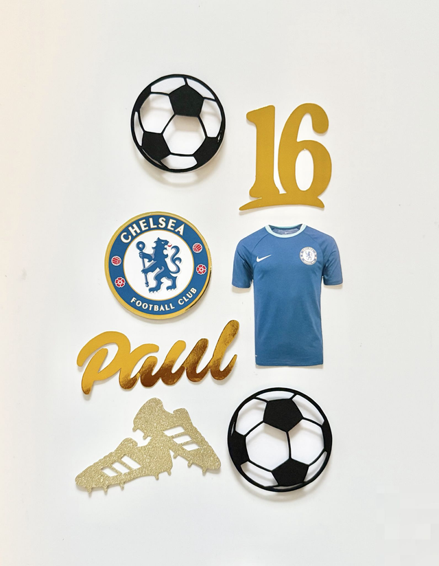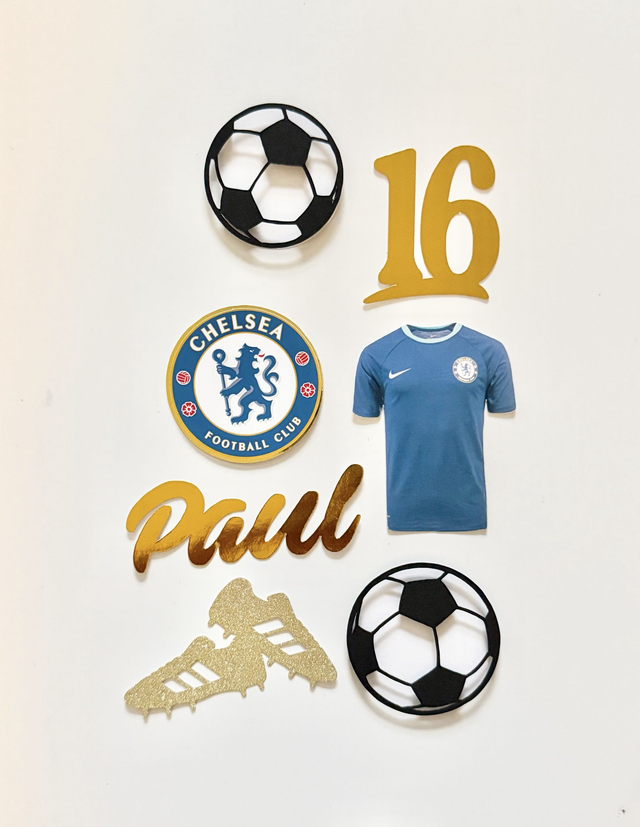 Personalised Chelsea football Birthday, Age, Name Cupcake Toppers