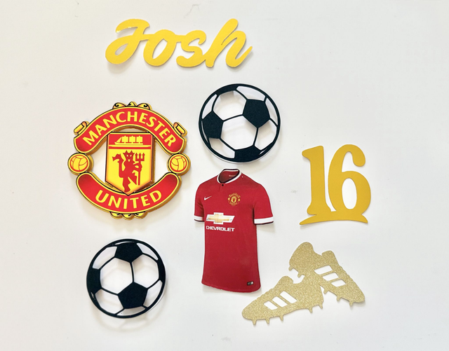 Personalised Manchester United football Birthday, Age, Name Cupcake Toppers