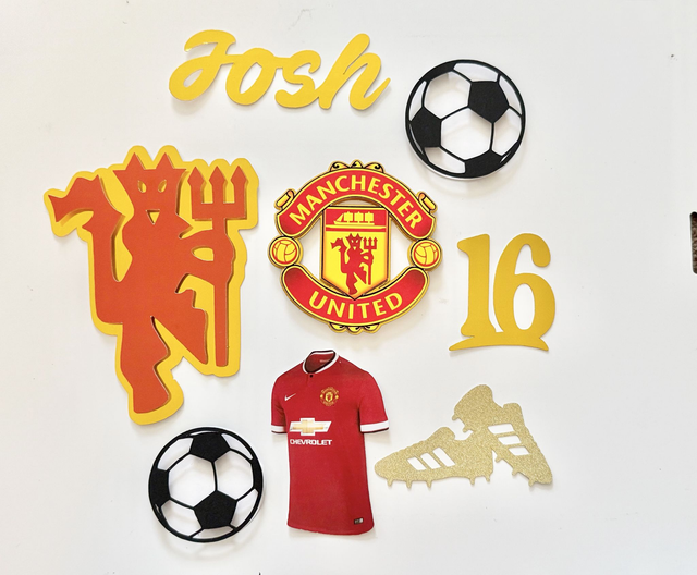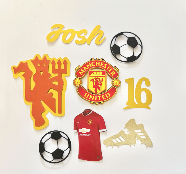 Personalised Manchester United football Birthday, Age, Name Cupcake Toppers